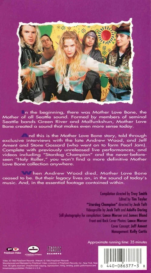 While the 12-string bass is not shown, the music video for “Stardog Champion” includes the 12. Jeff Ament reported, “I used an older 12-string bass on two songs for a Mother Love Bone record, ‘Stardog Champion’ and ‘Holy Roller’. When I was recording in San Francisco, I borrowed one of Tom Petersson’s basses for a week. It was a rental, and I guess someone at Polygram knew how to get a hold of him. I have a picture of myself with it somewhere.”